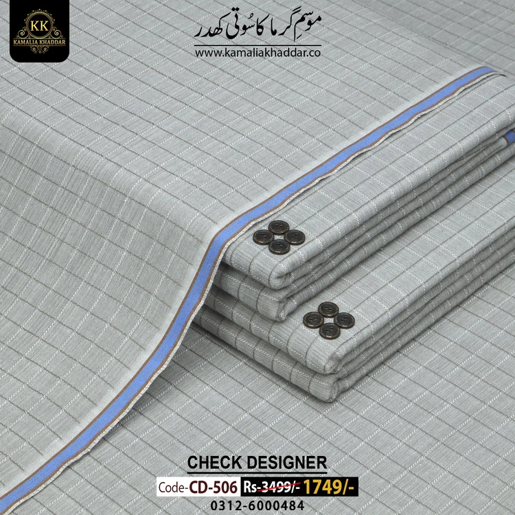 KAMALIA SUMMER CHECK DESIGNER KHADDAR  is a Non-Chemicalized Fabric Characterized By Luster, Durability, And An Intense Soft Feel For Human Skin.