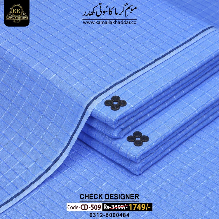 KAMALIA SUMMER CHECK DESIGNER KHADDAR  is a Non-Chemicalized Fabric Characterized By Luster, Durability, And An Intense Soft Feel For Human Skin.
